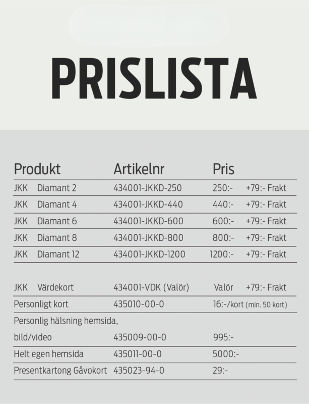 Julklappskortet är en flexibel present som alltid uppskattas. Det finns i fem olika valörer, men i stället för summor visas de som diamanter vilket gör gåvan mer elegant och spännande, eftersom mottagaren inte ser det exakta värdet.