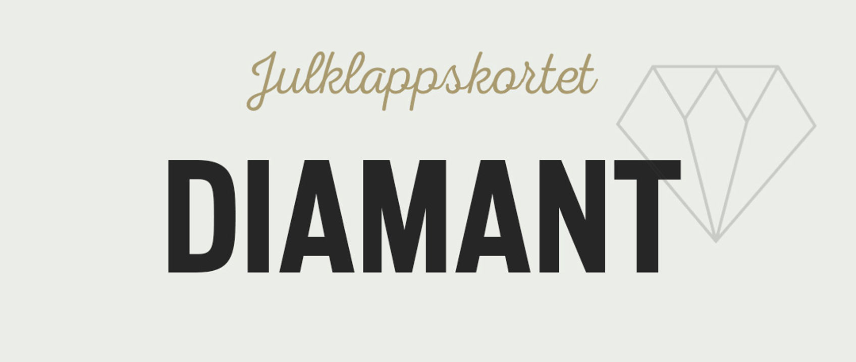 Julklappskortet är en flexibel present som alltid uppskattas. Det finns i fem olika valörer, men i stället för summor visas de som diamanter vilket gör gåvan mer elegant och spännande, eftersom mottagaren inte ser det exakta värdet.